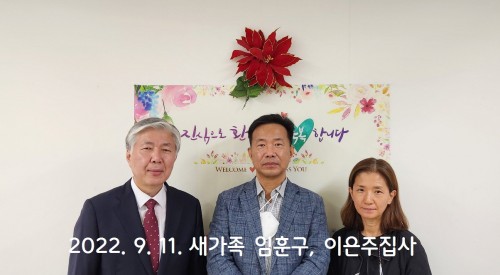 2022년 9월 11일 새가족 임훈구, 이은주집사 작성자신목교회 등록일 22-09-12 조회505회 이름신목교회 본문 2022. 9. 11일 새가족 임훈구, 이은주집사 스스로사랑하고 축복합니다. 2023년 새가족 4월 2일, 23일 새가족 봉학근성도, 이유정성도 2022. 5. 15일 새가족 (이근식집사, 경은순권사) 목록
